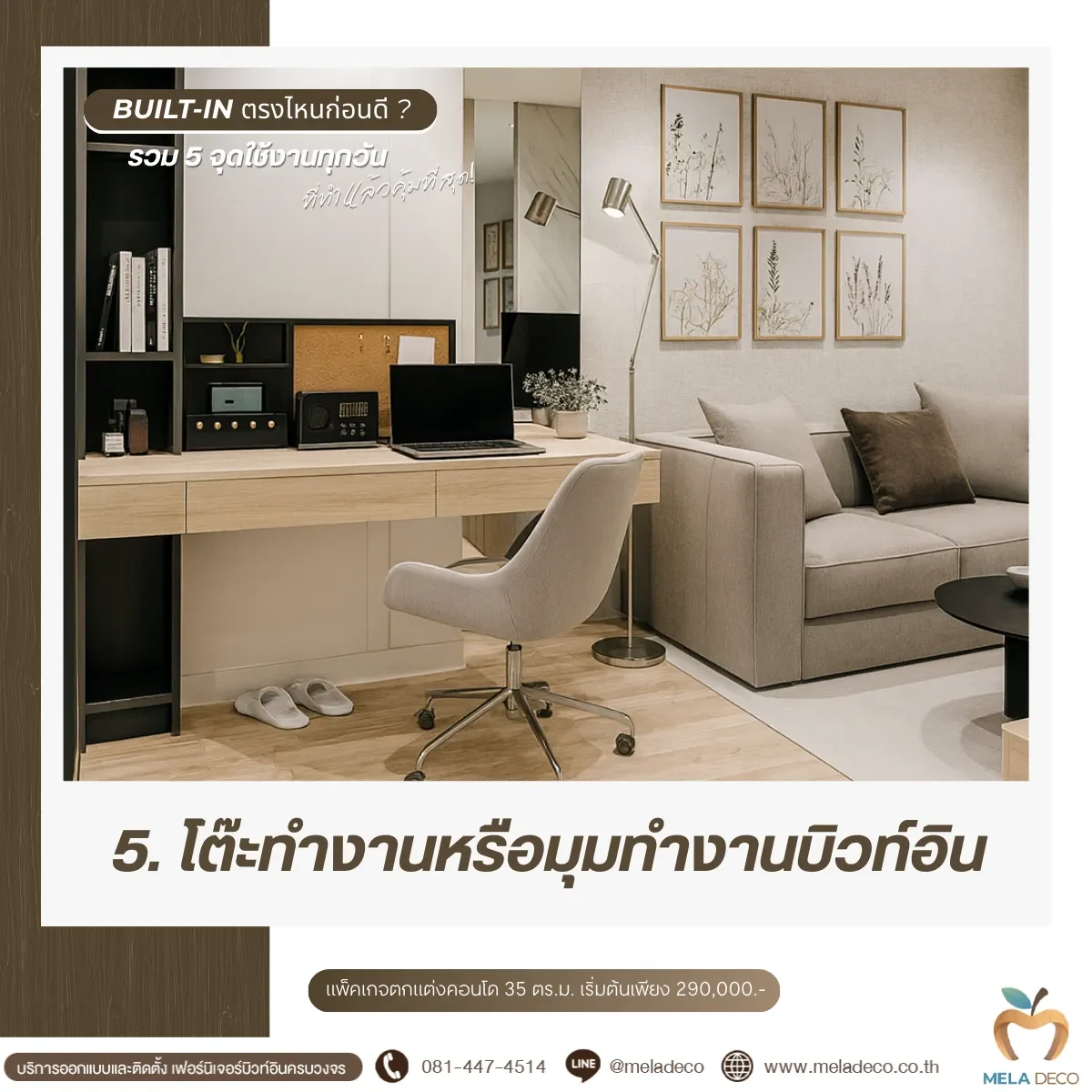 5. โต๊ะทำงานหรือมุมทำงานบิ้วอิน