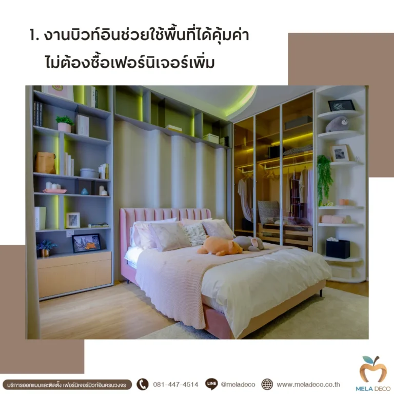 ในยุคที่ทุกคนให้ความสำคัญกับการออกแบบและการใช้พื้นที่อย่างคุ้มค่างานบิวท์อิน(Built-in) กลายเป็นตัวเลือกยอดนิยมสำหรับการตกแต่งบ้านและคอนโด เพราะนอกจากจะช่วยให้พื้นที่ดูเป็นระเบียบ เรียบหรู และใช้งานได้จริงแล้ว ยังสามารถออกแบบให้เข้ากับสไตล์ของเจ้าของบ้านได้อย่างลงตัว แต่สิ่งที่หลายคนอาจยังไม่รู้คือ งานบิวท์อินที่ได้มาตรฐาน ไม่เพียงช่วยให้บ้านดูสวยงาม แต่ยังช่วยประหยัดได้ในระยะยาว ทั้งในเรื่องค่าใช้จ่าย การซ่อมบำรุง และอายุการใช้งาน บทความนี้ Mela Deco จะพามาดูเหตุผลว่าทำไมงานบิวท์อินที่มีคุณภาพจึงคุ้มค่ากว่าที่คิด