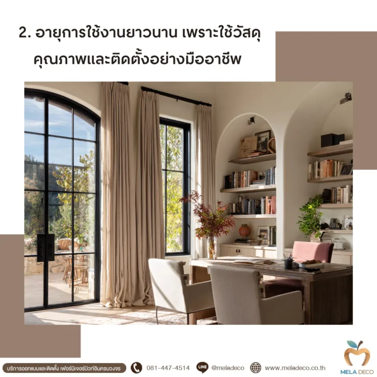 หลายคนอาจมองว่างานบิวท์อินมีราคาสูงกว่าการซื้อเฟอร์นิเจอร์ทั่วไป แต่หากพิจารณาในระยะยาวจะพบว่า งานที่ได้มาตรฐานสามารถอยู่ได้นานกว่าหลายปีโดยไม่ต้องซ่อมบ่อย สาเหตุหลักคือ งานบิวท์อินคุณภาพจะใช้วัสดุเกรดดี เช่น ไม้ MDF กันชื้น หรือไม้จริงเคลือบผิว และผ่านขั้นตอนการติดตั้งอย่างมืออาชีพ เช่น Mela Deco ซึ่งเป็นทีมออกแบบและผลิตงานบิวท์อินโดยทีมงานมืออาชีพ เน้นเรื่องคุณภาพวัสดุ