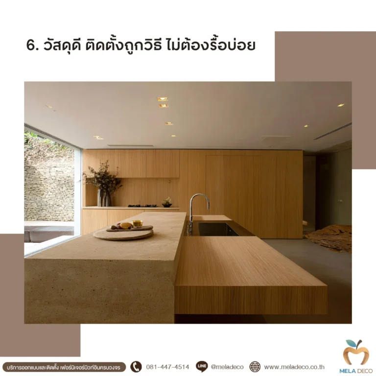 หากงานบิวท์อินทำโดยทีมที่ไม่มีมาตรฐานหรือใช้วัสดุราคาถูก คุณอาจต้องเจอกับปัญหาต่าง ๆ เช่น บานตู้บวมจากความชื้น , รอยแตกร้าวที่ขอบไม้ , ระบบบานพับหรือรางลิ้นชักเสียหาย ซึ่งการซ่อมแซมแต่ละครั้งไม่เพียงเสียเงิน แต่ยังเสียเวลาและสร้างความยุ่งยากในทางกลับกันงานบิวท์อินจากทีมที่มีมาตรฐาน เช่น Mela Deco จะมีขั้นตอนควบคุมคุณภาพตั้งแต่การออกแบบจนถึงการติดตั้งจริง โดยเลือกวัสดุที่มีความทนทานสูง เช่น แผ่นไม้กันชื้นที่เหมาะกับพื้นที่ครัวหรือห้องน้ำ , การเคลือบผิวกันรอยขีดข่วนและป้องกันเชื้อรา ทั้งหมดนี้ช่วยให้ไม่ต้องเสียค่าใช้จ่ายซ้ำซ้อนในอนาคต และทำให้เฟอร์นิเจอร์ดูใหม่อยู่เสมอค่ะ