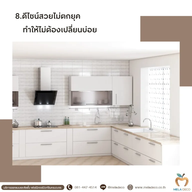 งานที่สวย ทันสมัย และลงตัวกับสไตล์ของบ้าน จะช่วยให้คุณไม่รู้สึกเบื่อหรือต้องเปลี่ยนเฟอร์นิเจอร์บ่อย เพราะทุกอย่างถูกออกแบบให้เข้ากับโทนโดยรวมของบ้าน เช่น งานดีไซน์จาก Mela Deco มักโดดเด่นด้วยความเรียบหรู ดูอบอุ่น และ timeless design ไม่ตกยุคง่าย ไม่ว่าจะผ่านไปกี่ปีก็ยังดูดี ซึ่งช่วยให้คุณ ประหยัดทั้งค่าใช้จ่ายและเวลาการรีโนเวตในอนาคตเลยค่ะ