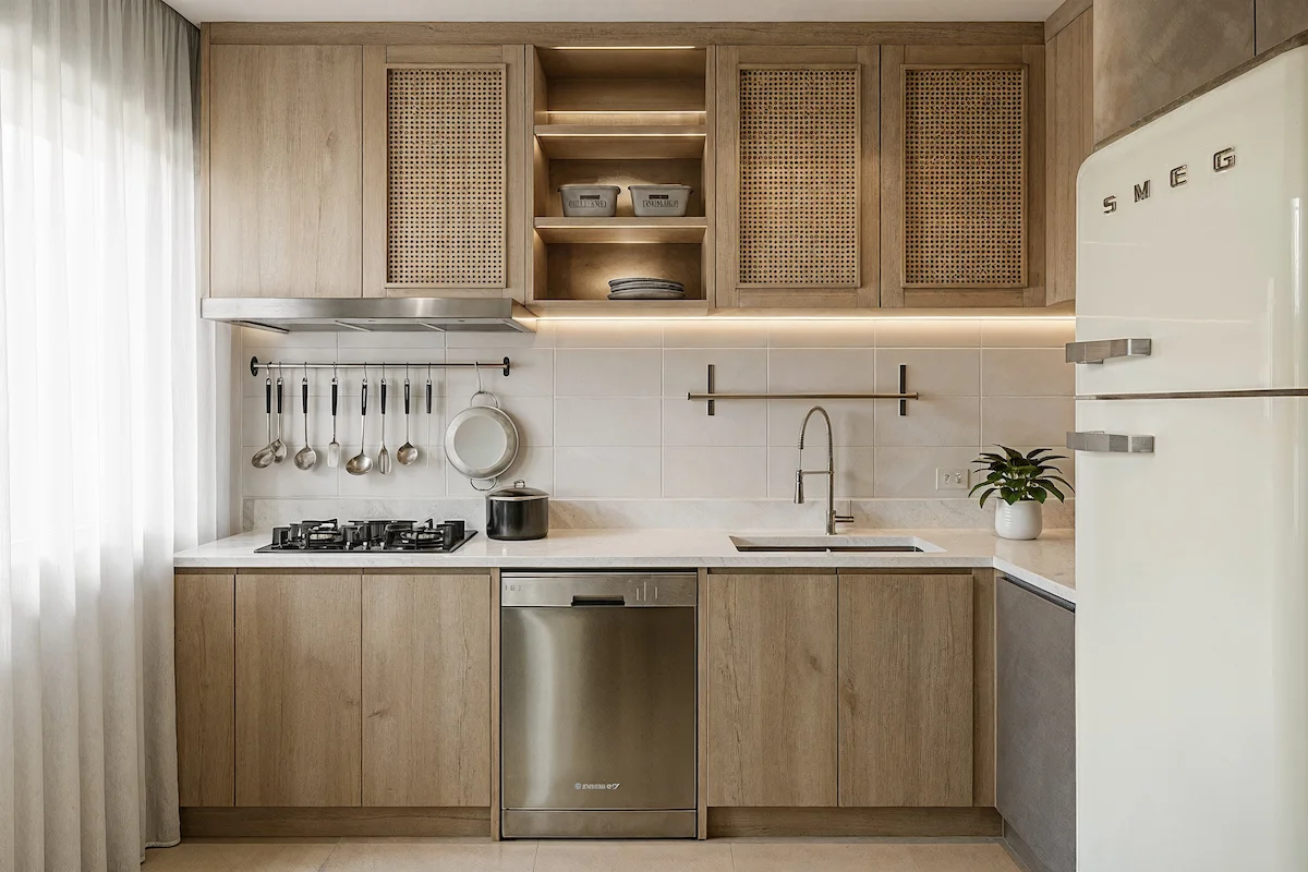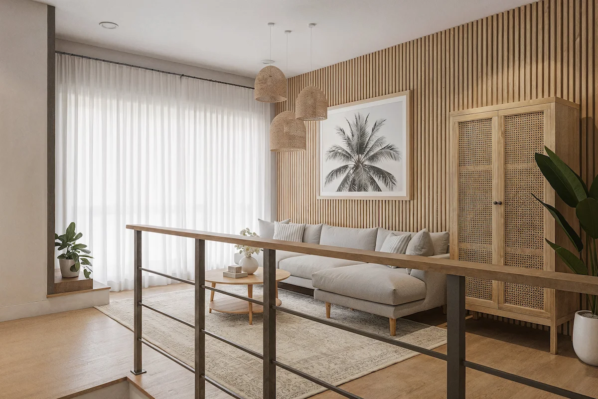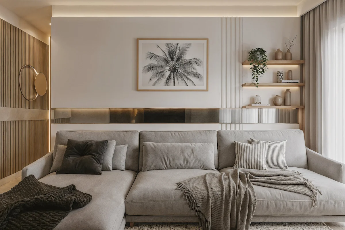 1. Whispering Light Palette การผสมผสานระหว่างเฉดขาวครีมกับไม้ธรรมชาติ เพื่อสร้างความสว่างที่ละมุนและเบา เหมือนแสงยามเช้าที่ซึมผ่านถ้วยชาขาวอย่างเงียบงาม