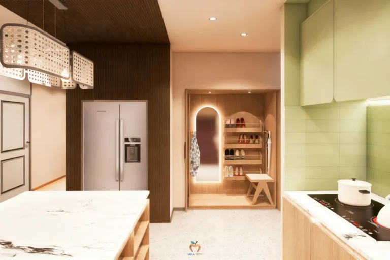 Matcha Flow ไม่ได้ออกแบบมาเพื่อหยุดนิ่งแต่เพื่อให้ความสงบ “ไหลเวียน” ทุกการเดินผ่าน ทุกการนั่งพัก ทุกครั้งที่สายตาสบกับผิวไม้หรือแสงไฟ คือการได้หายใจเข้าลึก ๆ แล้วรู้สึกว่า “ฉันกลับมาบ้านแล้ว” ในรายละเอียดของงานบิ้วอินทุกชิ้น จากรอยต่อไม้ที่ประณีต ไปจนถึงการจัดแสงที่นุ่มนวล สะท้อนแนวคิดของ Mela Deco ที่มองว่าความงามไม่ควรถูกสร้างขึ้นเพียงเพื่อมองแต่เพื่อ “รู้สึกได้” ทุก Collection ของเราจึงเริ่มจากการทำความเข้าใจชีวิตของผู้อยู่อาศัยและออกแบบให้ทุกมุมของบ้านเป็นส่วนหนึ่งของจังหวะชีวิตนั้นอย่างแท้จริงค่ะ