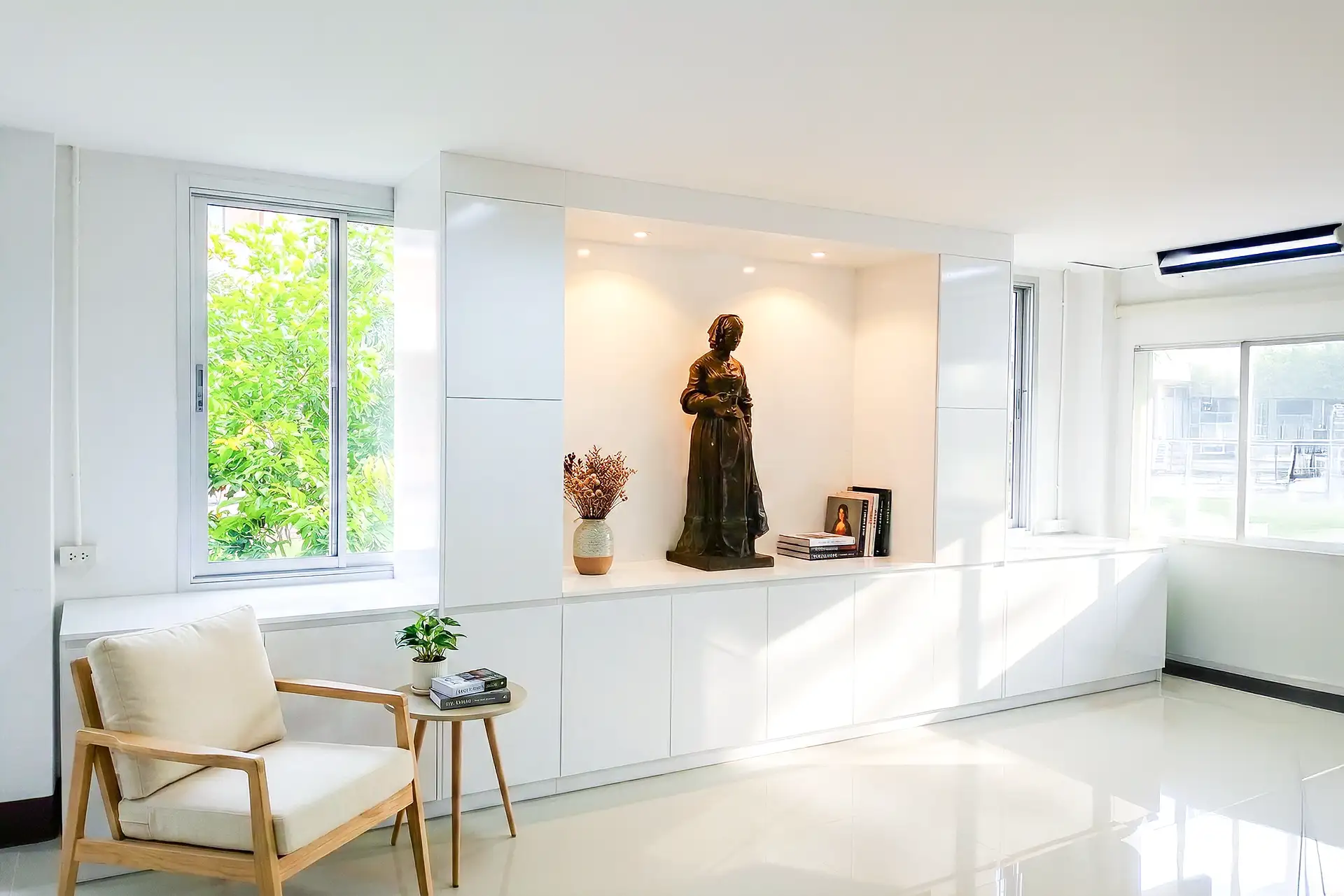 ผลงานออกแบบและติดตั้ง Built-in Storage Cabinet by Mela Deco โครงการนี้เป็นการจัดสร้างพื้นที่เก็บของแบบบิลต์อินให้กับกระทรวงสาธารณสุข โดยมีเป้าหมายเพื่อให้ “พื้นที่ใช้งานจริง” มีความเป็นระเบียบ เรียบร้อย และมีดีไซน์ที่สอดคล้องกับสภาพแวดล้อมงานราชการอย่างมืออาชีพ ทีม Mela Deco จึงออกแบบให้ Storage Cabinet นี้มีทั้งความทนทาน ใช้งานได้จริง และมีภาพลักษณ์ที่ดูดีซึ่งเหมาะสมกับภารกิจของกระทรวง