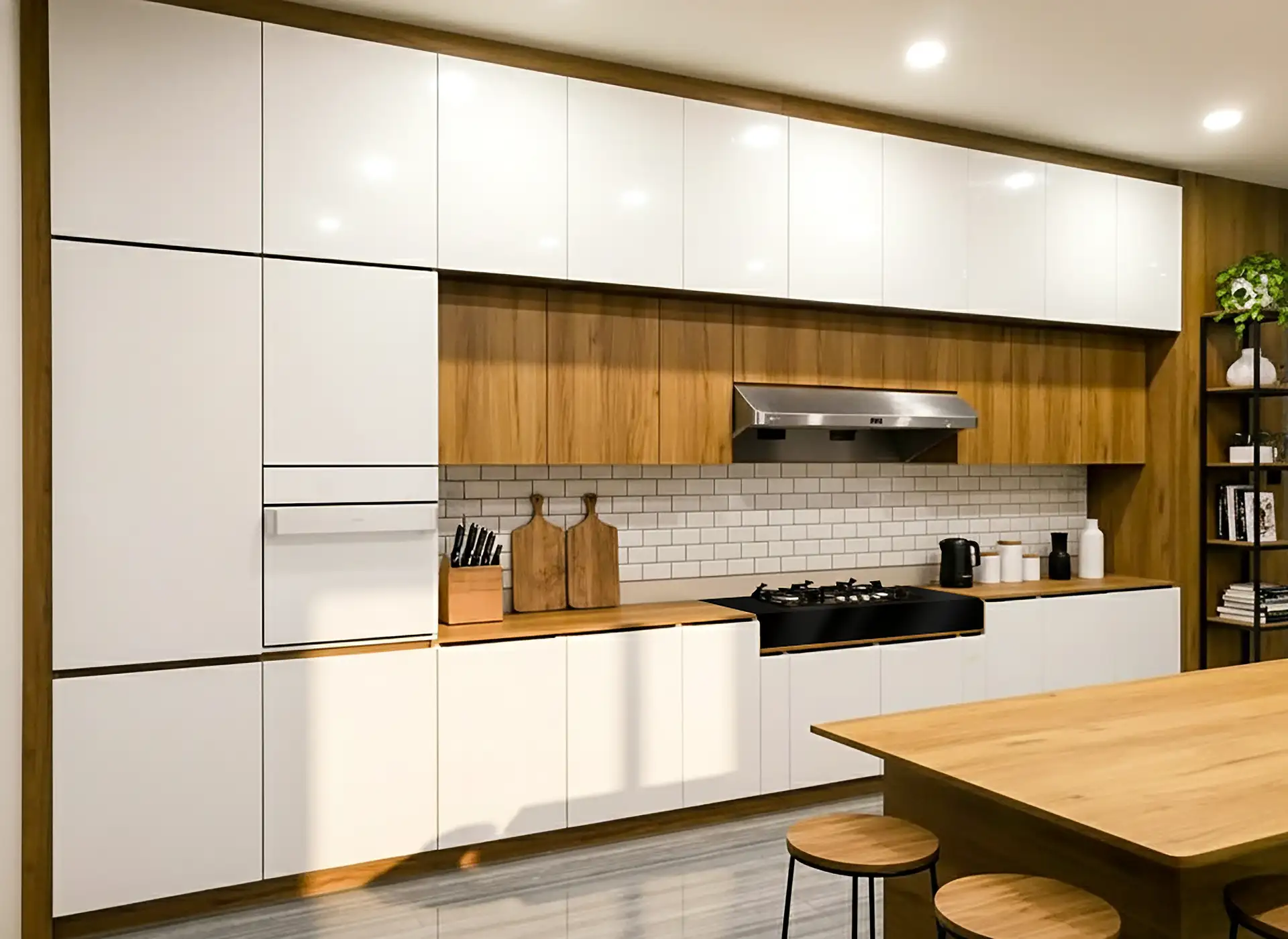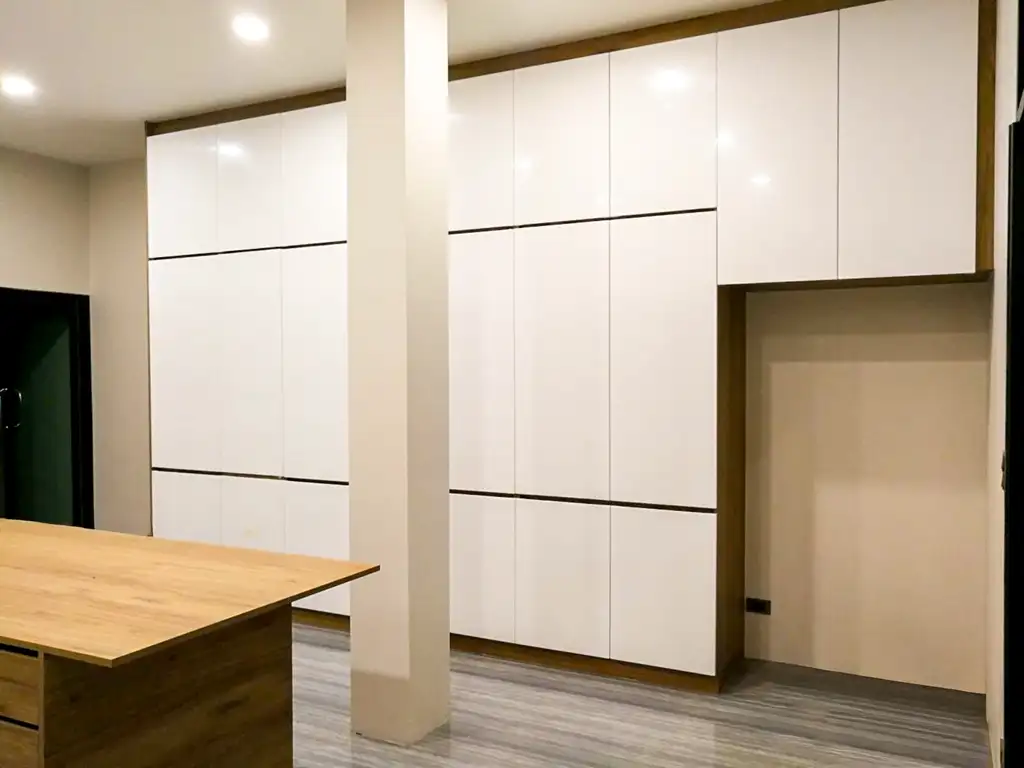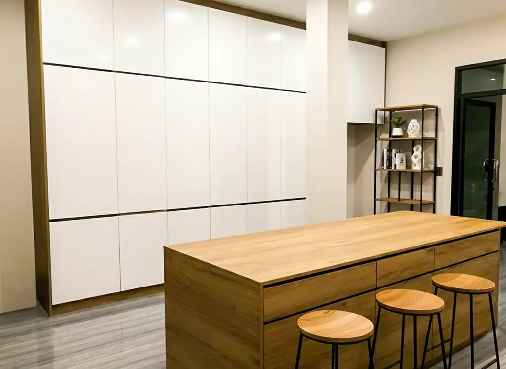 ผลงานออกแบบและตกแต่งห้องครัว Kitchen Built-In by Mela Deco ห้องครัวชุดนี้ถูกออกแบบเพื่อให้เป็นพื้นที่ใช้งานที่ทั้ง สวยงาม ใช้งานสะดวก และตอบโจทย์ไลฟ์สไตล์ของลูกค้า อย่างแท้จริง ด้วยดีไซน์สไตล์โมเดิร์นเรียบหรู ผสมผสานวัสดุที่คัดสรรอย่างพิถีพิถัน ทำให้ครัวชุดนี้โดดเด่นทั้งเรื่องความสวยงามและความทนทานในระยะยาว