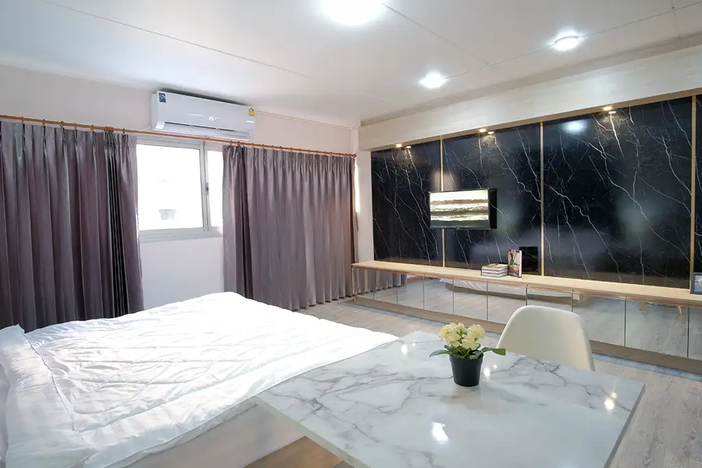ผลลัพธ์คือห้องที่ตอบโจทย์ทั้ง ดีไซน์ ฟังก์ชัน และความสะดวกสบาย เหมาะกับไลฟ์สไตล์ของเจ้าของห้องที่ต้องการพื้นที่ที่ดูดี ใช้งานง่าย และมีความหรูหราในทุกดีเทล แม้จะอยู่ในห้องคอนโดขนาดกะทัดรัดก็ตาม