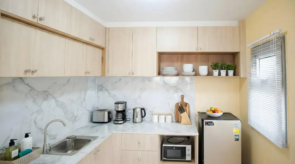 ผลงานรีโนเวทและบิวท์อินห้องพักที่ Riviera Condo เมืองทองธานี โครงการนี้เป็นงานออกแบบและบิ้วท์อินเฟอร์นิเจอร์โดย Mela Deco ครอบคลุมพื้นที่ห้องนั่งเล่น ห้องนอน ห้องน้ำ และห้องครัว โดยร่วมมือกับ Indy Badger ผู้เชี่ยวชาญด้านงานโครงสร้าง เพื่อดูแลในส่วนของงานพื้น งานผนัง งานฝ้า และงานทาสี ให้ทุกองค์ประกอบเชื่อมต่อกันอย่างเรียบร้อยและแข็งแรง